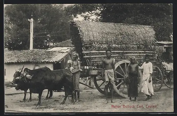 AK Ceylon, Native Bullock Cart, Ochsen-Gespann