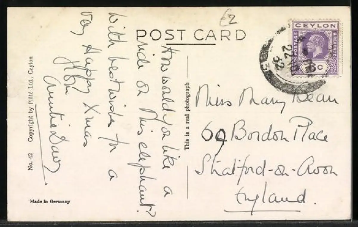 AK Ceylon-Sri Lanka, Elefant bei der Arbeit