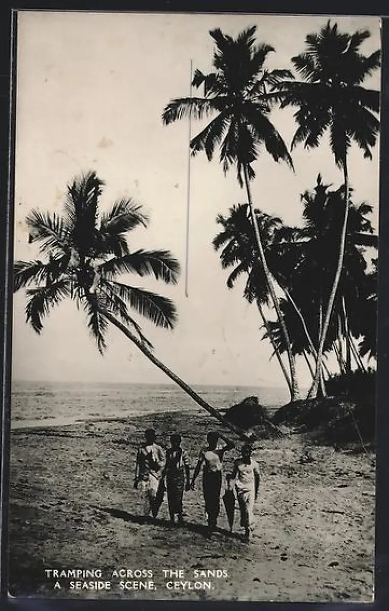 AK Ceylon, Trampping across the Sands, A seaside scene
