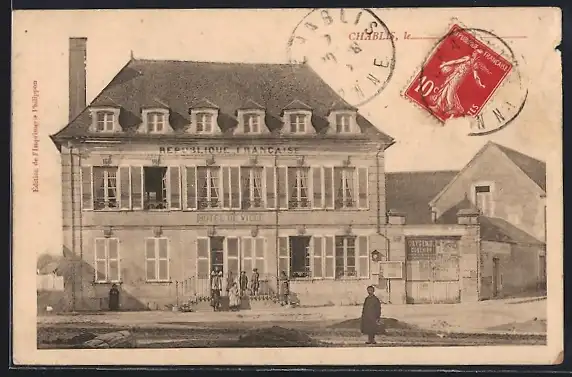 AK Chablis, Hôtel de Ville avec passants devant le bâtiment