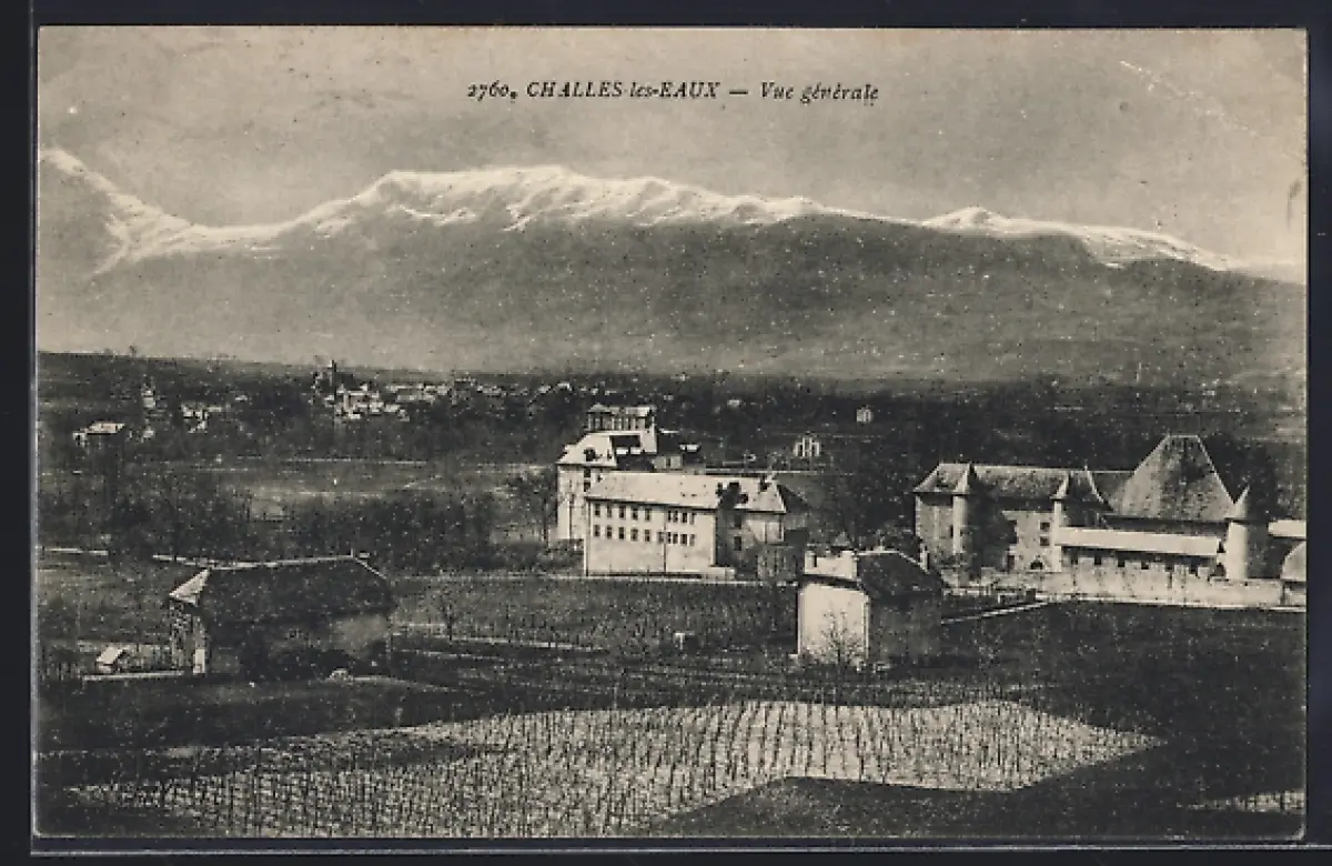 AK Challes-les-Eaux, Vue générale avec montagnes en arrière-plan