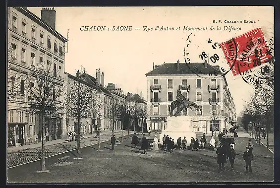 AK Chalon-sur-Saône, Rue d`Autun et Monument de la Défense