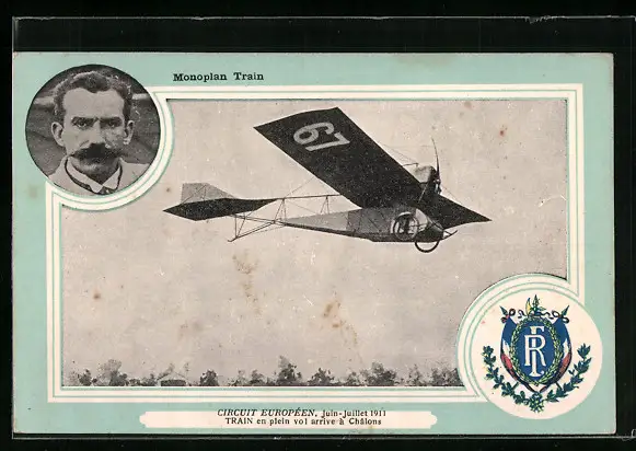 AK Chalons, Monoplan Train, Circuit Europeen 1911, Flugzeug-Pionier Train mit Flugzeug Nr. 69