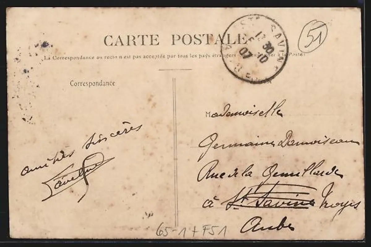alte Ansichtskarte, gelaufen 1907, Briefmarke entfernt, Bugspur rechts oben, guter Zustand