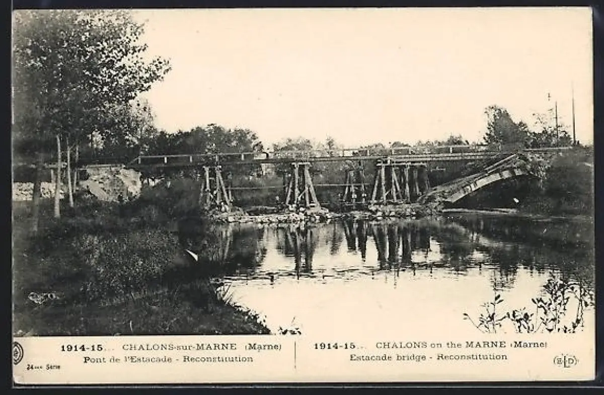 AK Châlons-sur-Marne /Marne, Pont de l`Estacade, Reconstitution