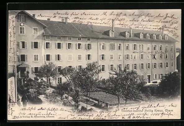 AK Cham, Töchter-Institut Heilig Kreuz mit Garten aus der Vogelschau