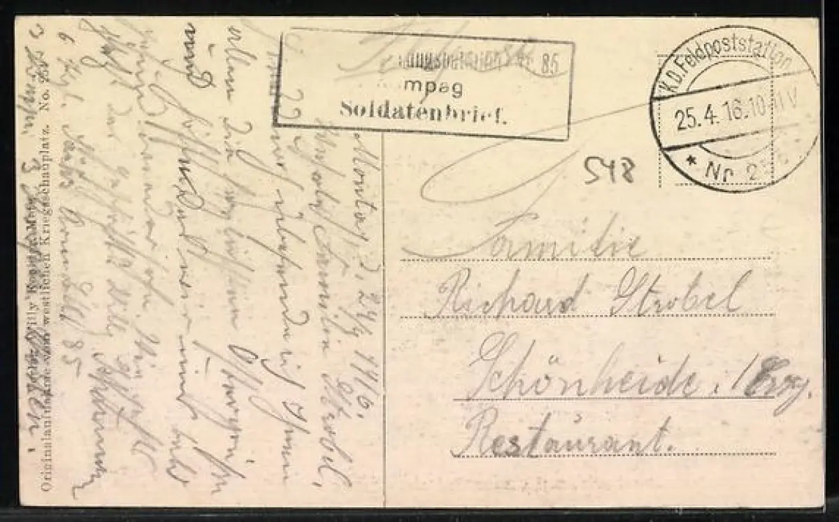 alte Ansichtskarte, gelaufen 1916, Bugspur re. unten, guter Zustand