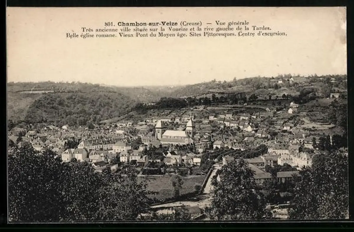 AK Chambon-sur-Voueize /Creuse, Vue générale avec église romane et pont médiéval, sites pittoresques