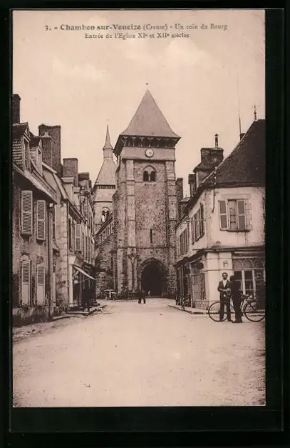AK Chambon-sur-Voueize, Un coin du Bourg, Entrée de l`Eglise XIe et XIIe siècles