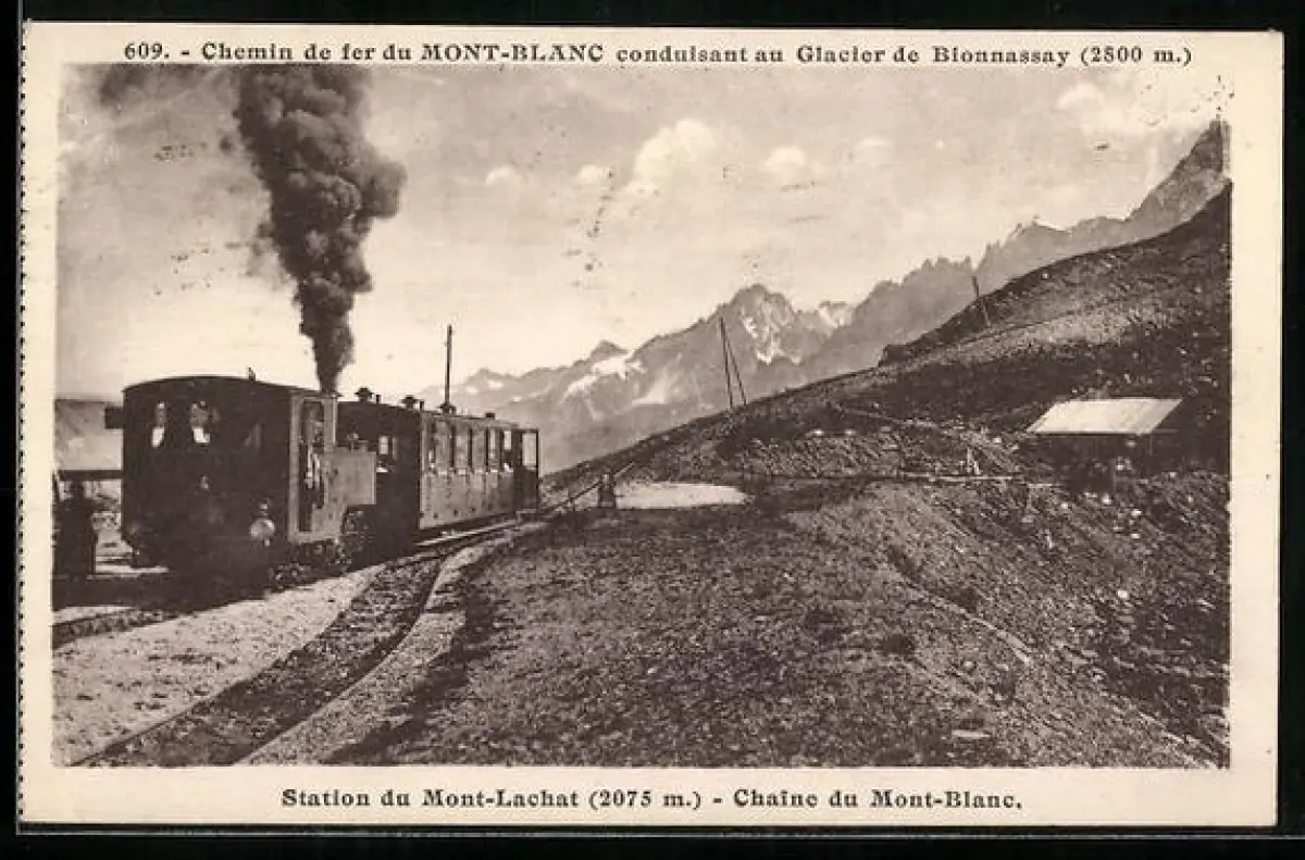 AK Chamonix, Chemin de fer du Mont-Blanc conduisant au Glacie de Bionnassay, Station du Mont-Lachat, Chaîne du Mt-Blanc