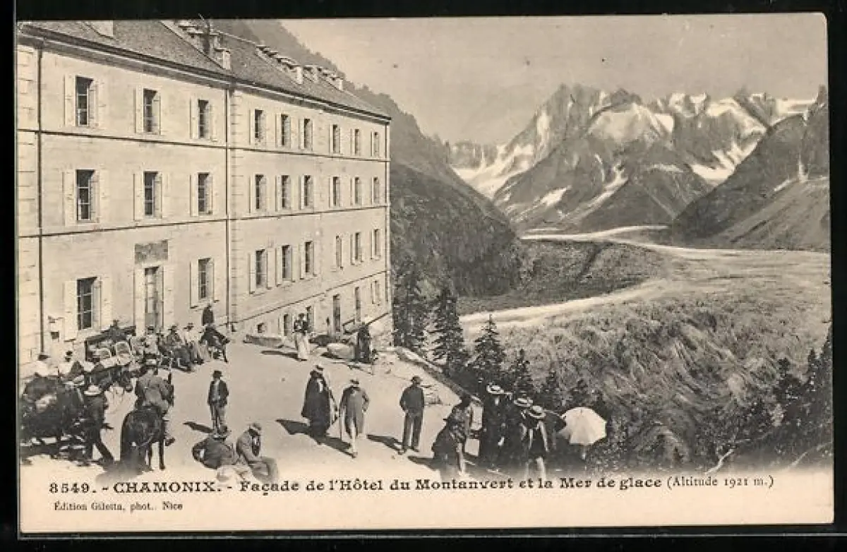 AK Chamonix, Facade de l`hôtel du Montanvert et la Mer de glace
