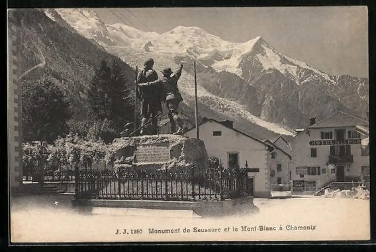 AK Chamonix, monument de Saussure et le Mont-Blanc