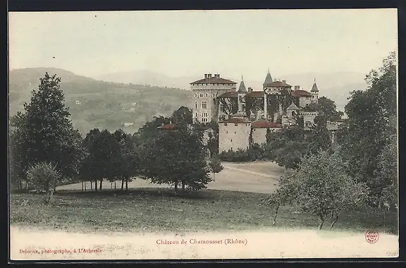 AK Chamousset, Vue du château entouré de verdure et collines