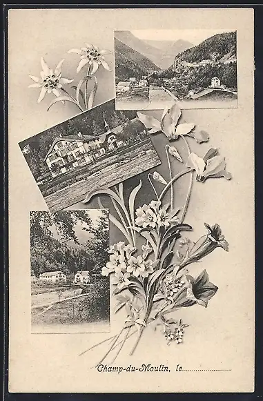 AK Champ-du-Moulin, verschiedene Häuser- und Ortsansichten