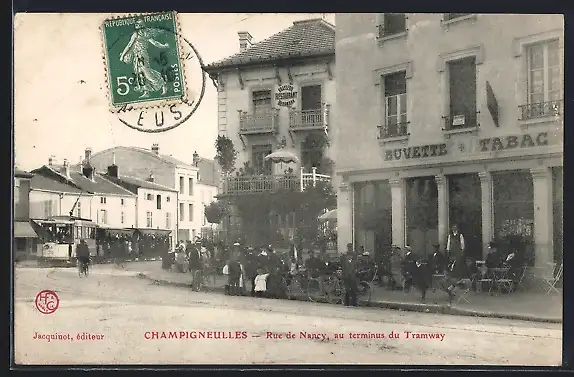 AK Champigneulles, Rue de Nancy au terminus du Tramway