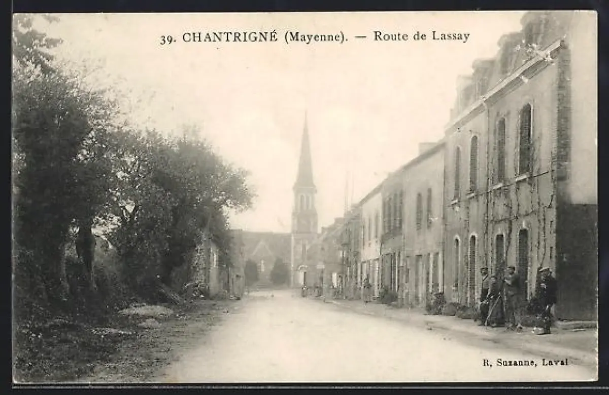 AK Chantrigné /Mayenne, Route de Lassay et vue de l`église au loin