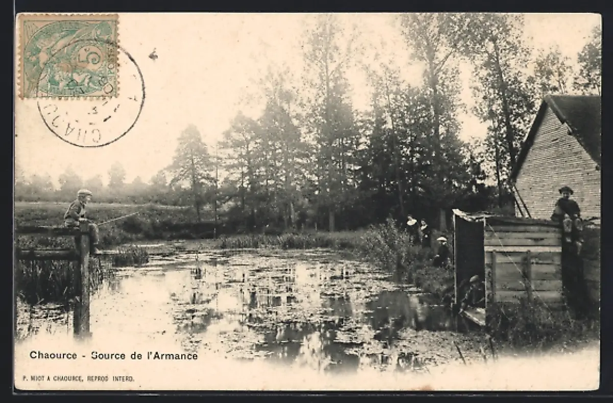 AK Chaource, Source de l`Armance avec pêcheurs au bord de l`eau