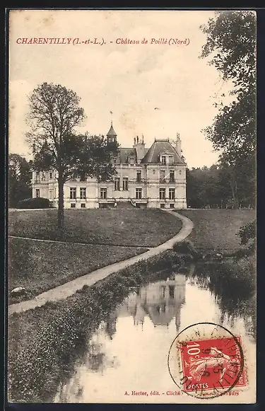 AK Charentilly, Château de Poillé avec reflet dans l`eau