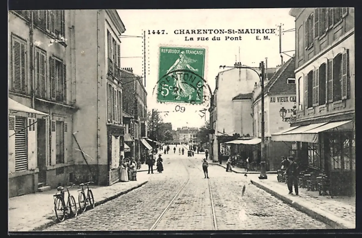 AK Charenton-St-Maurice, La rue du Pont avec passants et vélos