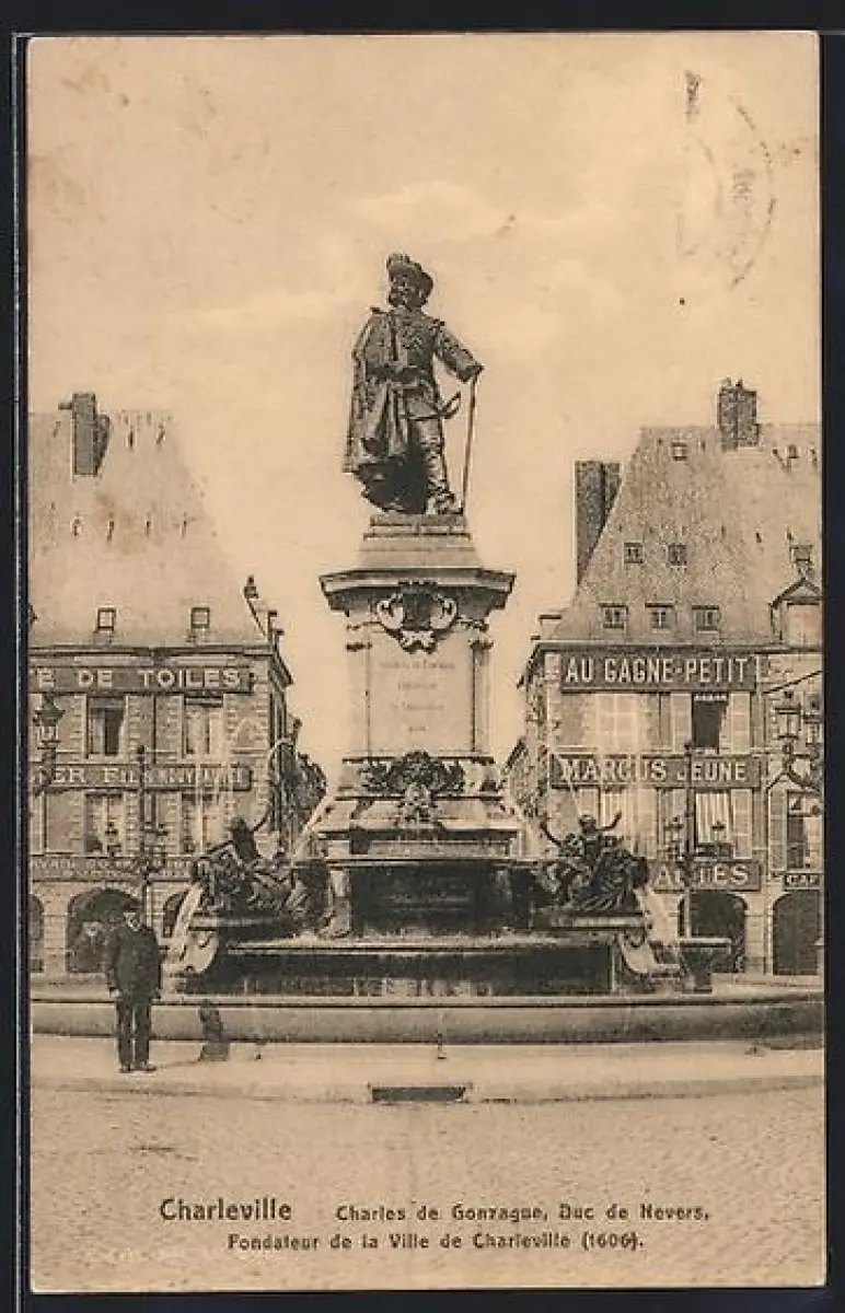 AK Charleville, Monument de Charles de Gonzague sur la place centrale