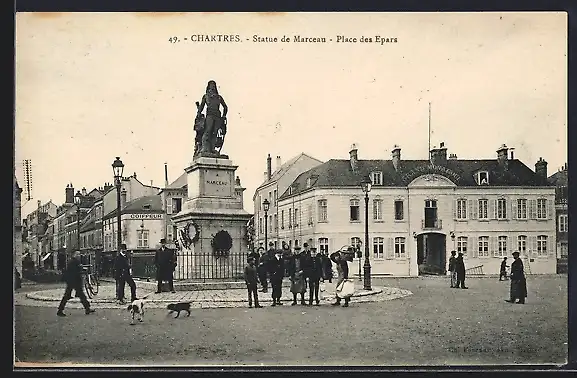 AK Chartres, Statue de Marceau sur la Place des Épars