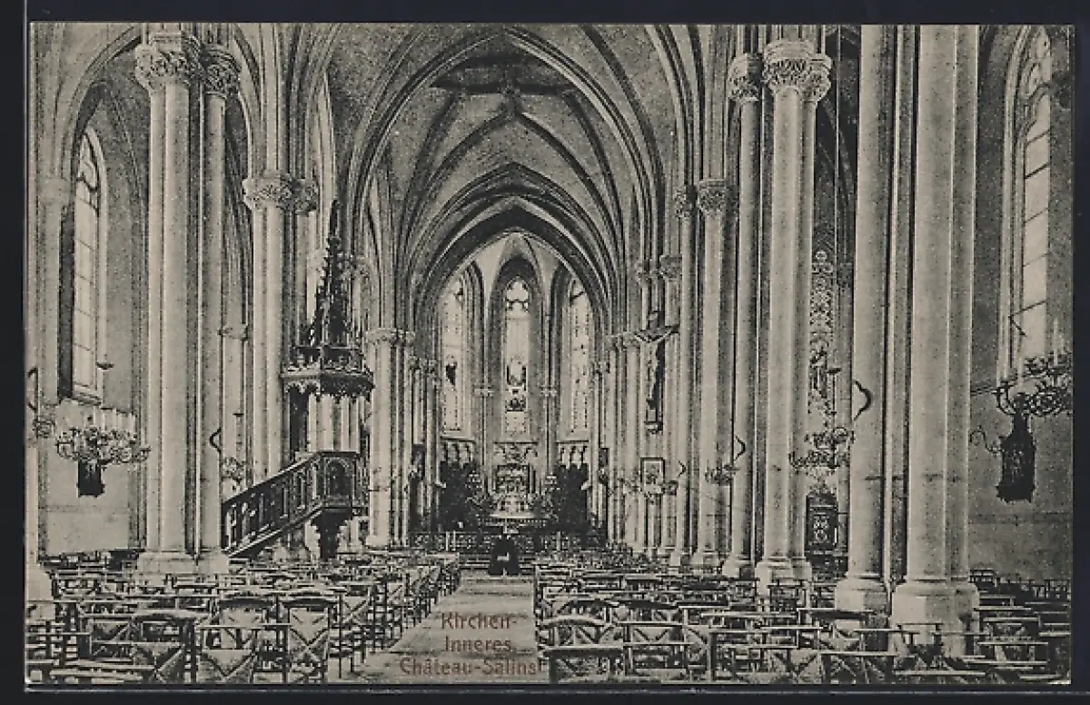AK Château-Salins, Intérieur de l`église avec vue sur la nef et le choeur