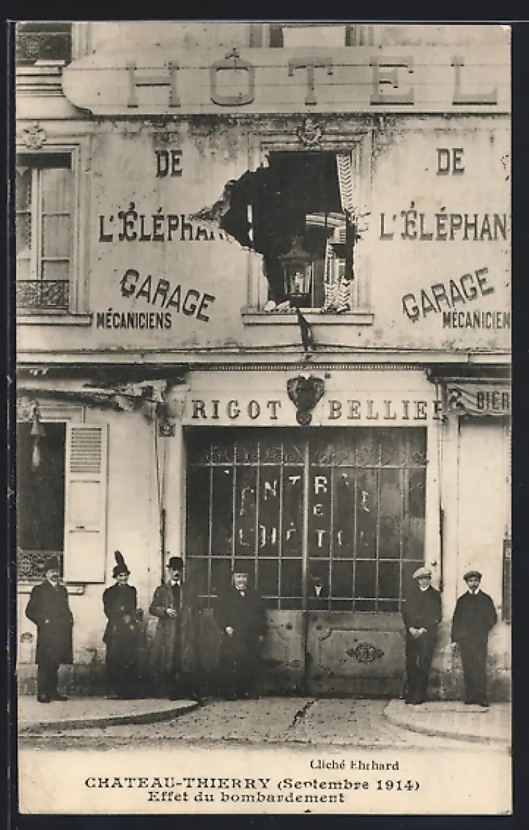 AK Château-Thierry, Effet du bombardement sur l`Hôtel de l`Éléphant, Septembre 1914