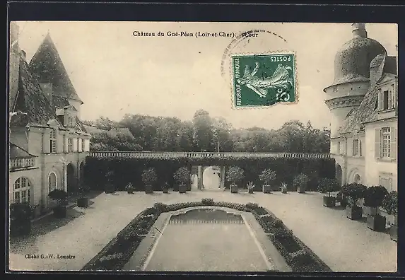 AK Château du Gué-Péan, Cour intérieure avec bassin et architecture élégante