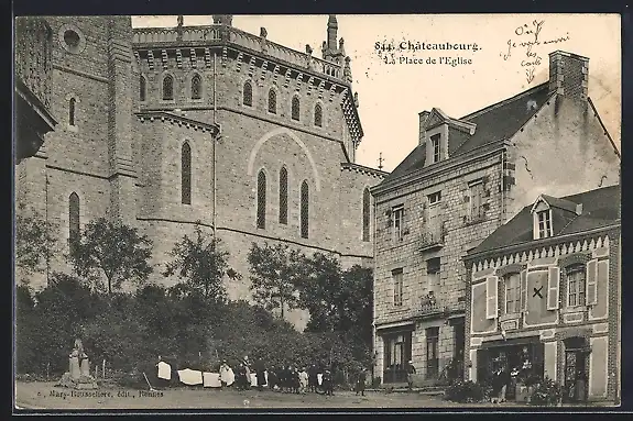 AK Châteaubourg, La Place de l`Église avec vue sur l`église et les bâtiments environnants