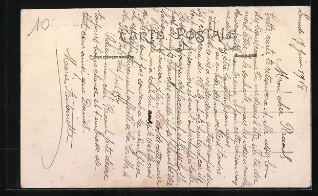 ungelaufen, Rückseite beschrieben 1918, guter Zustand