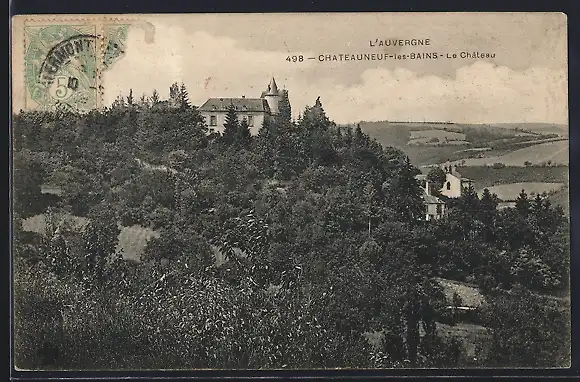 AK Châteauneuf-les-Bains, Le Château et la vue panoramique de la campagne environnante