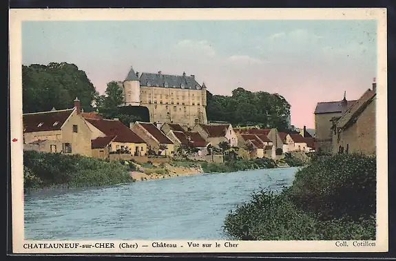 AK Châteauneuf-sur-Cher, Château, Vue sur le Cher