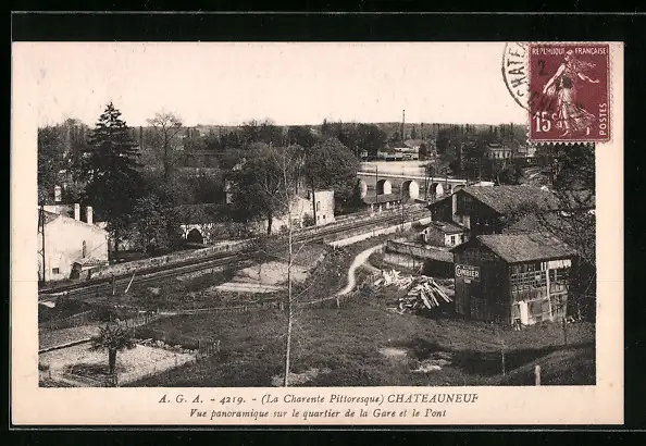 AK Chateauneuf, vue panoramique sur le quartier de la Gare et le Pont