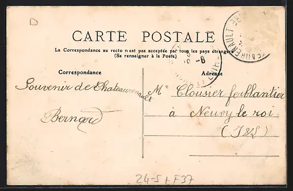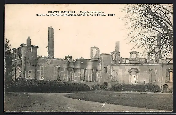 AK Chateaurenault, Facade principale, Restes du Chateau après l`Incendie du 5 au 6 Fèvrier 1907, Hochwasser