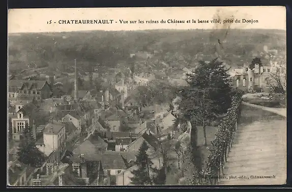 AK Chateaurenault /Indre-et-Loire, Vue sur les ruines du Chateau et la basse ville, prise du Donjon