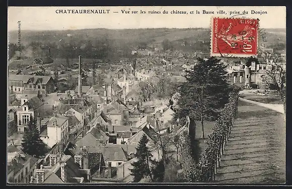 AK Chateaurenault /Indre-et-Loire, Vue sur les ruines du chateau, et la Basse ville, prise du Donjon