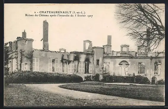 AK Chateaurenault, Ruines du Chateau après l`incendie du 5 Fèvrier 1907