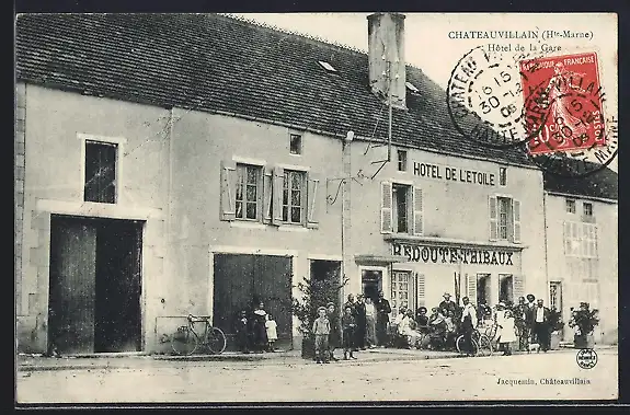 AK Chateauvillain /H.-Marne, Hôtel de la Gare avec groupe de personnes devant l`entrée