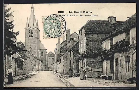 AK Chateauvillain, Rue Amiral Decrès avec vue sur l`église et habitants