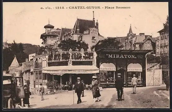 AK Châtel-Guyon, Place Brosson avec commerces et passants