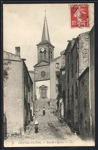 AK Châtel-Guyon, Rue de l`Église avec vue sur le clocher
