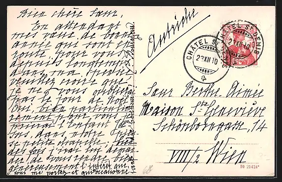 alte Ansichtskarte, gelaufen 1910, Stempelspur, Eckknicke unten, guter Zustand