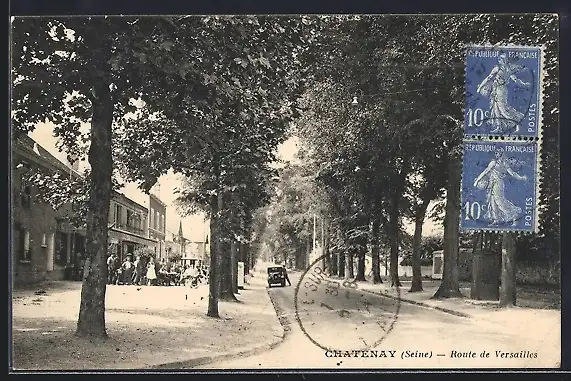 AK Châtenay /Seine, Route de Versailles avec voitures et passants