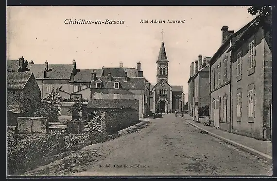 AK Châtillon-en-Bazois, Rue Adrien Laurent et vue de l`église