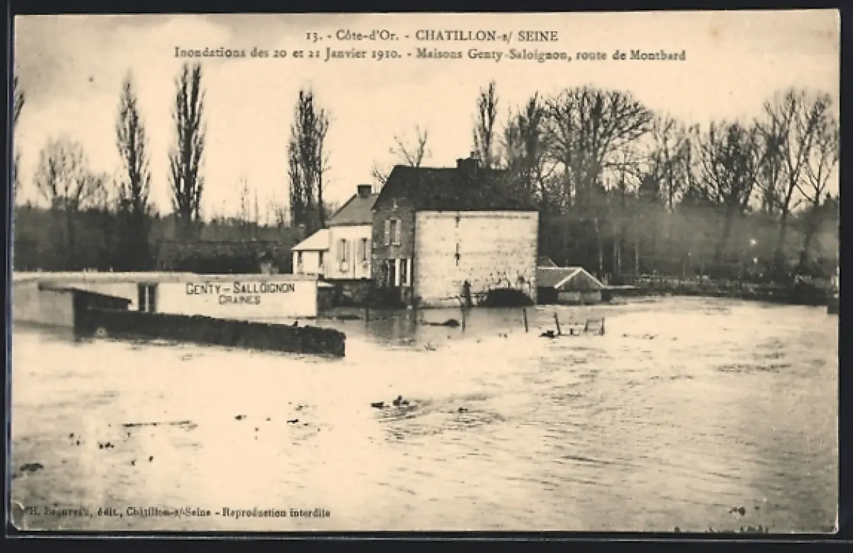 AK Chatillon-s-Seine, Inondations 1910, Maisons Genty-Soloignon, route de Montbard