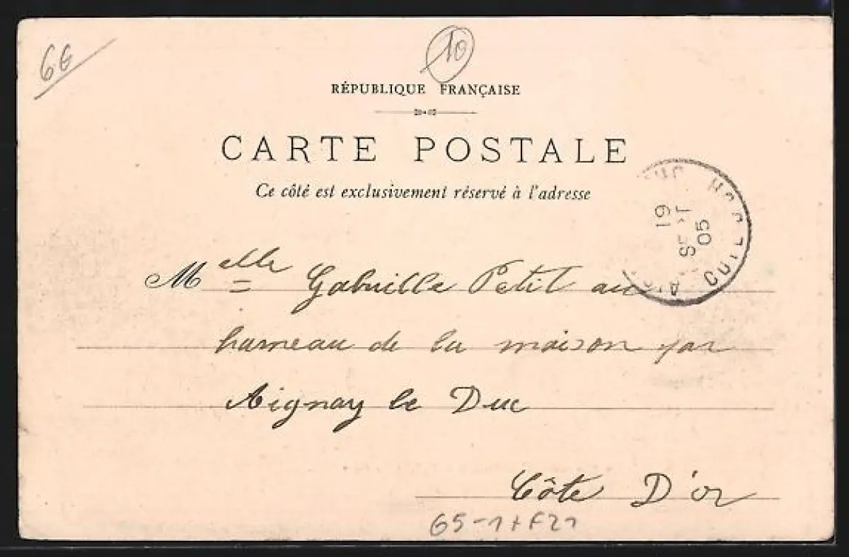 alte Ansichtskarte, gelaufen 1905, Eckknick re. oben, vorderseitig Klebe- und Papierreste, guter Zustand