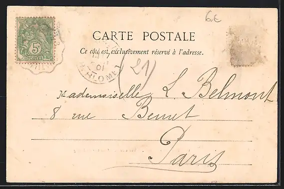 alte Ansichtskarte, gelaufen, Briefmarke entfernt, guter Zustand