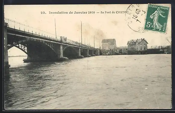 AK Chatou, Inondation de Janvier 1910, Au pont de Chatou