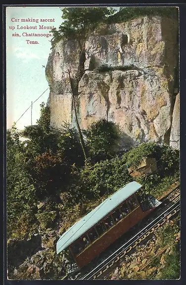 AK Chattanooga, Tenn., Car making ascent up Lookout Mountain, Bergbahn