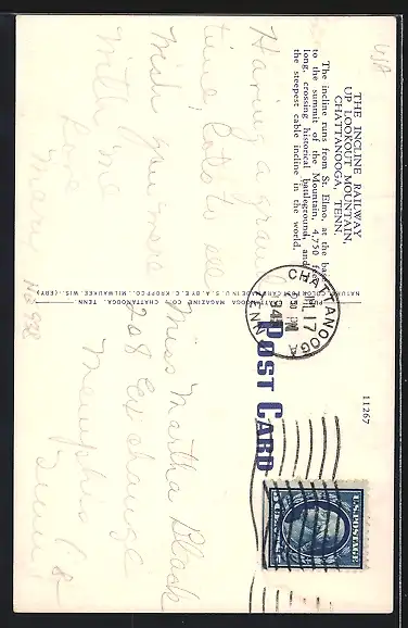 AK Chattanooga, Tenn., Incline Railway Up Lookout Mountain, Bergbahn